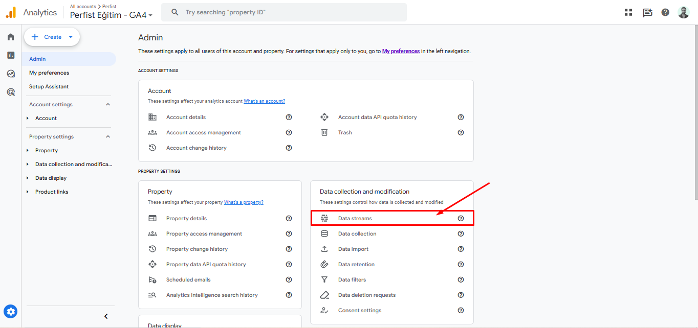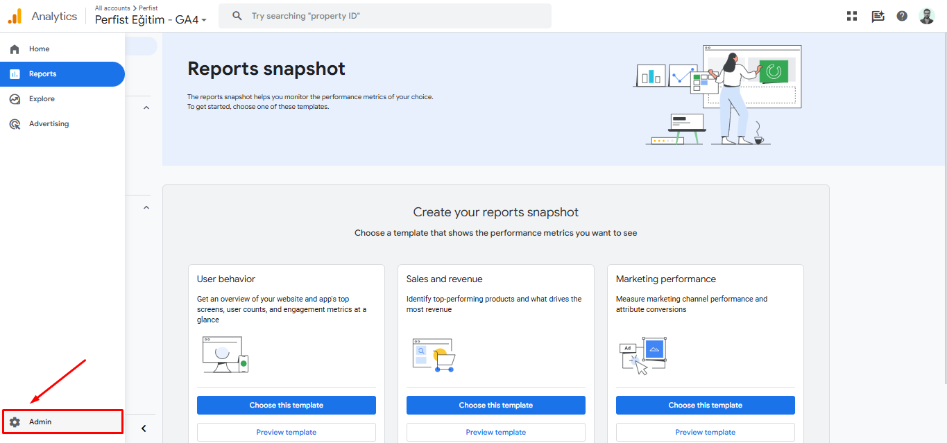 1- Google Analytics hesabınıza giriş yapın ve istediğiniz GA4 mülkünü seçin.